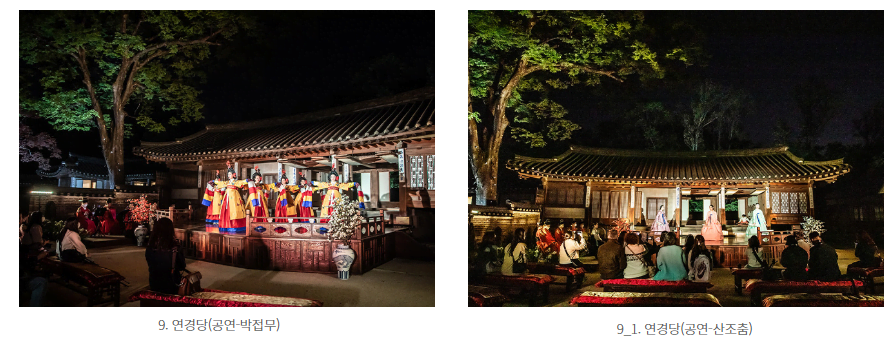 ① 돈화문(집결, 해산) → ② 금천교 → ③ 인정전 → ④ 희정당 → ⑤ 낙선재 → ⑥ 상량정(대금연주) → ⑦ 부용지·부용정(거문고연주) → ⑧ 불로문・애련정(가곡) → ⑨ 연경당(전통예술공연) → ⑩ 후원숲길