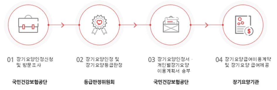 노인장기요양등급을 신청하려면 아래와 같은 절차를 따릅니다.