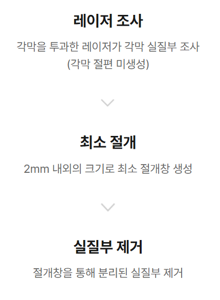 - 적용 대상: 근시(-10D 이하) 및 난시(-5D 이하)에 효과적