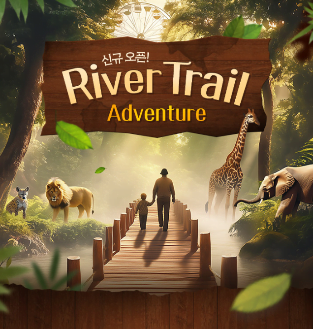 '리버 트레일 어드벤처'는 사파리월드와 로스트밸리 사이의 수로에 설치된 길이 110m, 폭 3m의 부교를 따라 걸으며 동물들을 관찰하는 프로그램입니다. 약 1,500개의 폰툰(pontoon)과 안전 펜스로 구성된 이 부교는 물길 위를 걷는 독특한 경험을 선사합니다.