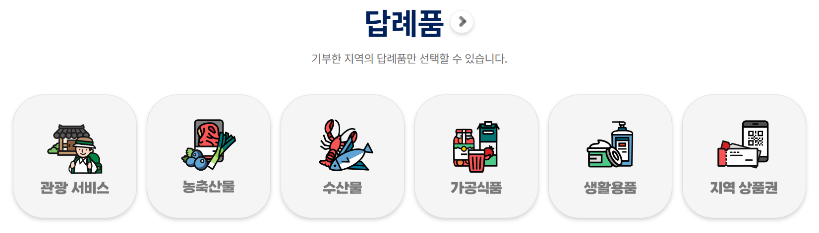 기부한 금액의 최대 30% 상당의 지역특산물, 상품권, 기프티콘 등을 받을 수 있습니다.