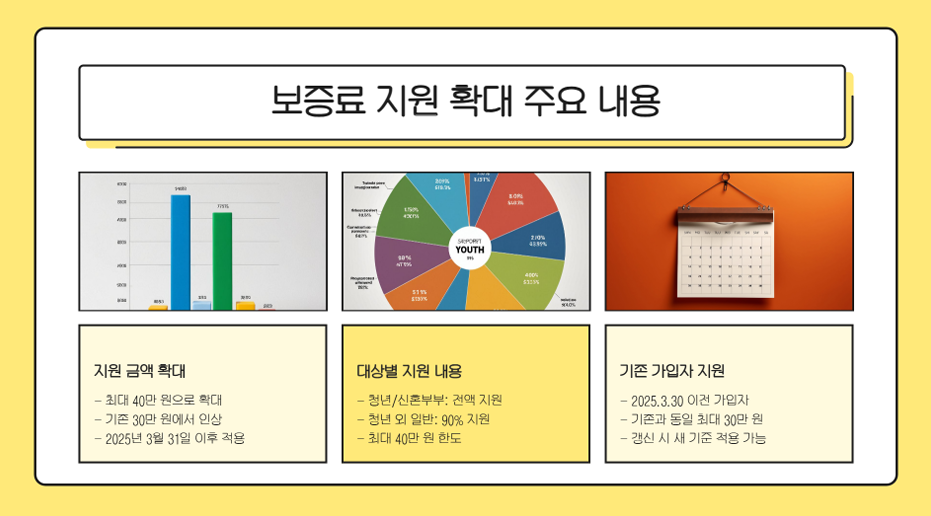 부산시는 보증료 현실화 조치와 주거 안정 정책에 따라 2025년부터 전세보증금 반환보증 가입자에게 최대 40만 원까지 지원합니다. 기존에는 30만 원이 한도였으나, 이번 개편으로 청년 및 신혼부부에게 더욱 유리한 조건이 제공됩니다.